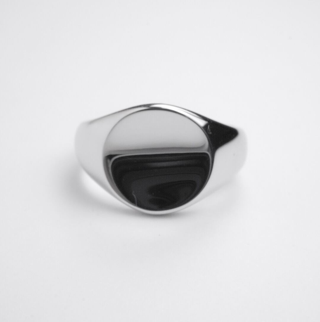 トップが円形のデザインのシグネットリング。